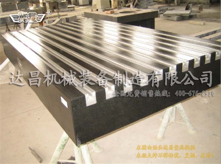 T型槽的大理石平臺先把大理石平臺放到機床上面開出槽來,然后用小機床把金屬條加工好,加工好金屬條再把金屬條鑲嵌到大理石平臺上面的槽子里,使用專用膠粘接好